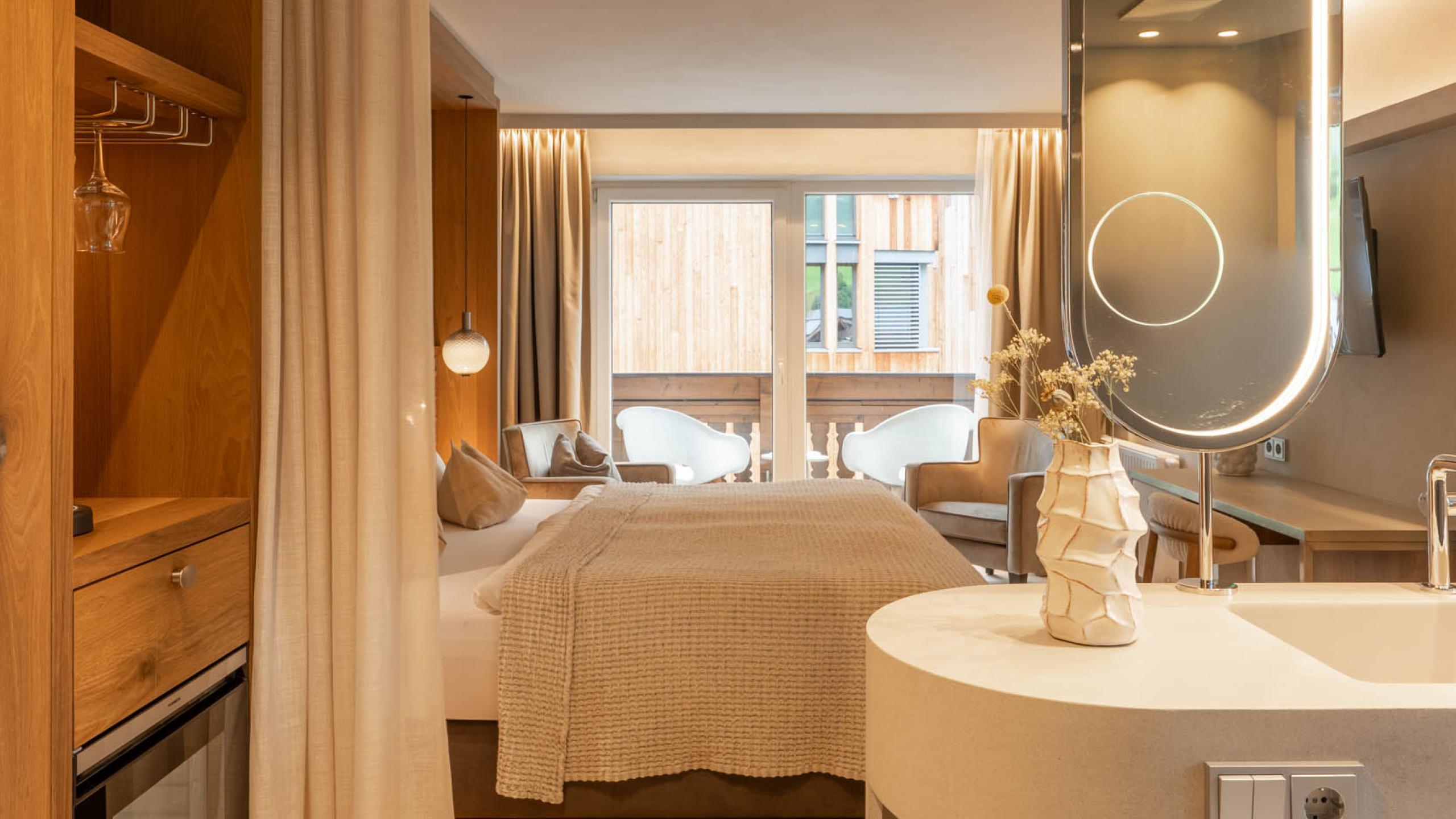 - Edles Holz und natürlicher Lehmputz sorgen für eine beruhigende, stilvolle Atmosphäre